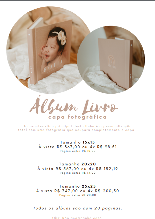 Em nosso estúdio de fotografia, somos apaixonados por transformar suas fotografias em lembranças tangíveis e duradouras. Estamos comprometidos em criar imagens significativas e emocionantes. Além disso, oferecemos a opção de transformar essas fotos em belos álbuns e recordações personalizadas, que se tornarão tesouros preciosos em sua vida. Entre em contato conosco para agendar uma sessão fotográfica ou para saber mais sobre nossos serviços. Juntos, podemos criar álbuns fotográficos excepcionais que contarão suas histórias de maneira única e eterna.